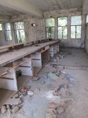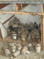As we walk around the factory, pushing past thorny branches and strolling along tree-lined pathways I am shocked and saddened by what exists here. Rooms full of spilled jars of chemicals with hazard signs sill clearly visible after 26 years, left lying like the equipment of a failed science experiment. A factory full of the components required to make pesticides the world over, most of it extremely dangerous, has been discarded when no longer useful to a profit-making corporation. It was walked away from and forgotten about, just like the people who were employed there.